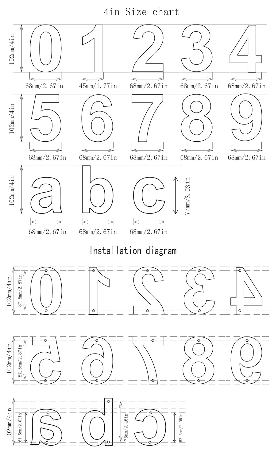 - Nuestros números y letras son extremadamente duraderos y están diseñados para resistir las condiciones más duras. Viene con un kit de montaje de alta calidad que también está hecho de acero inoxidable 304.